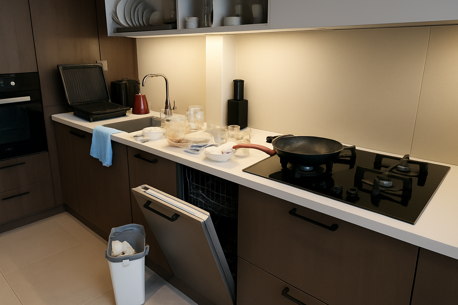 - Rengöring av kök: spis, ugn, kyl/frys, fläkt, skåp in- och utvändigt